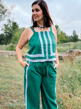 Tallulah Dress by THML - Olive Green Midi Dress with Orange Contrast Stripes