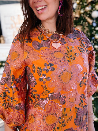 Brocade Shift Dress in Russet by Ivy Jane - Orange Brocade Mini Dress