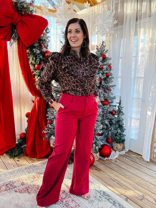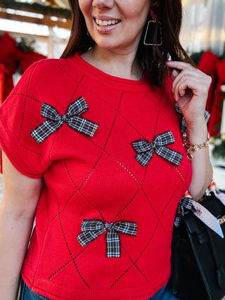 Delphina Sweater - Christmas Red Sweater with Rhinestone Bow Neckline