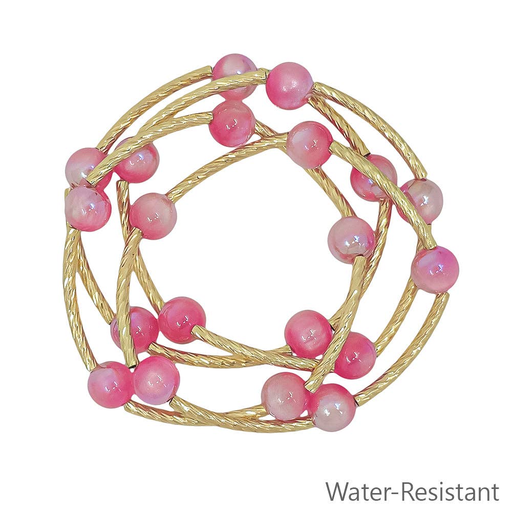 Looking for pink beaded stretch bracelets with gold piping that are lightweight, stackable, and perfect for mixing and matching?