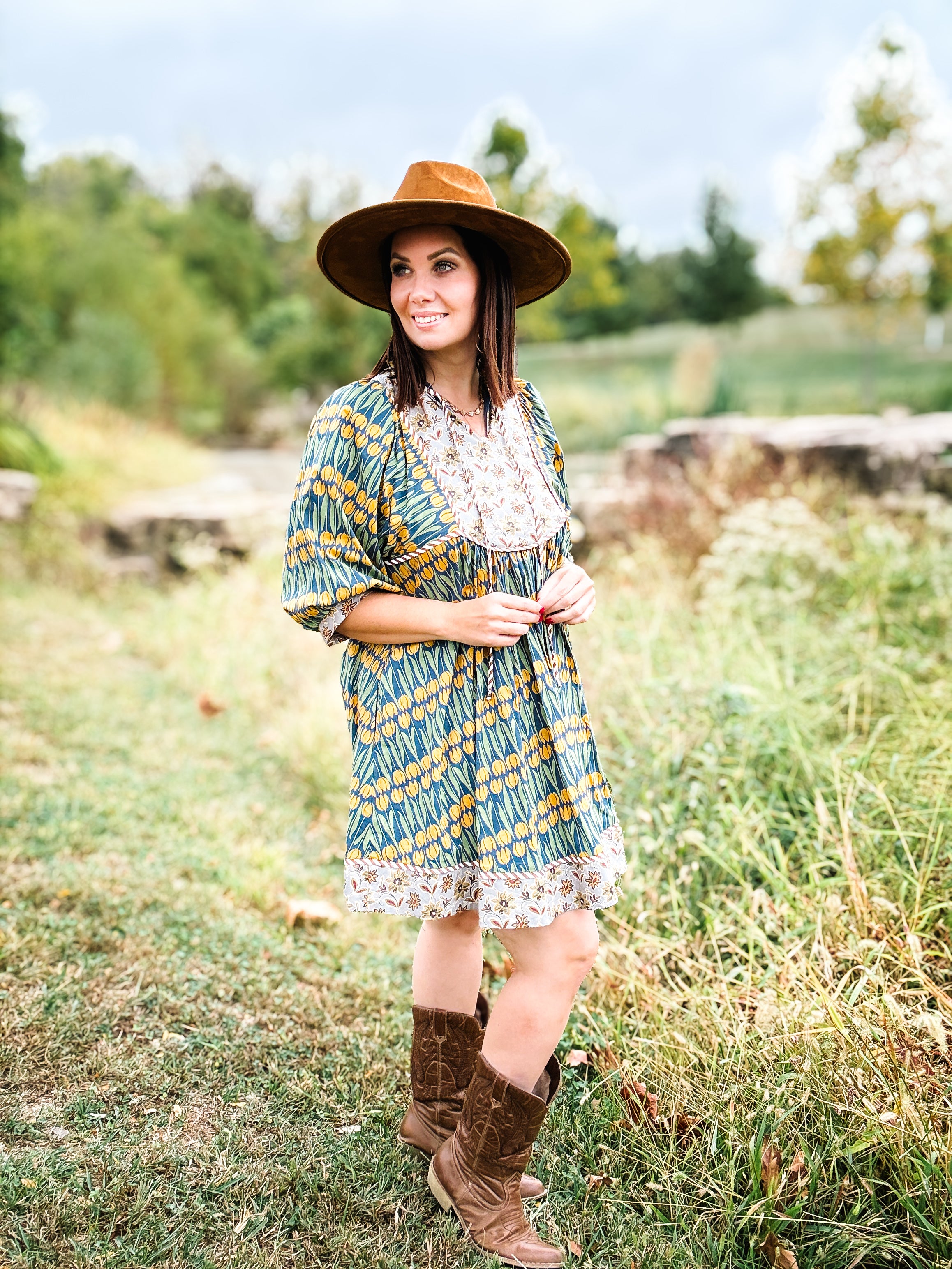 Marigold Dress - Green and Yellow Floral Mini Dress