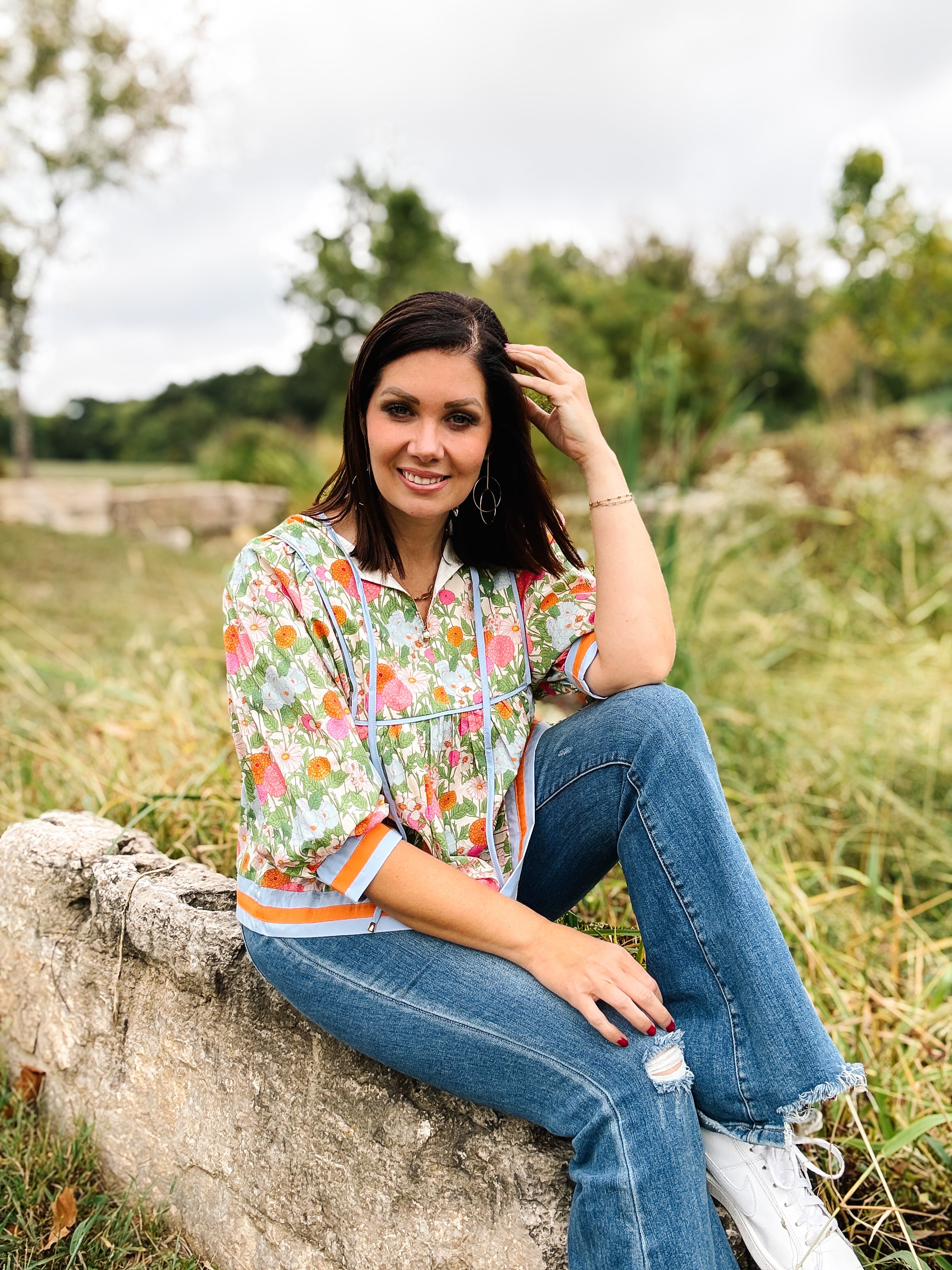 Enter the Alona Top—a bold little number that said, “What if cottagecore and cool-girl energy had a baby… and she was a lot?” Packed with vibrant florals, cheeky stripe details, and the kind of breezy, confidence-boosting silhouette that makes you strut through Target like it’s Paris Fashion Week, this top isn’t here to play it safe. She’s here to be noticed. Pair her with denim and hoops and suddenly you’re the main character in every parking lot.