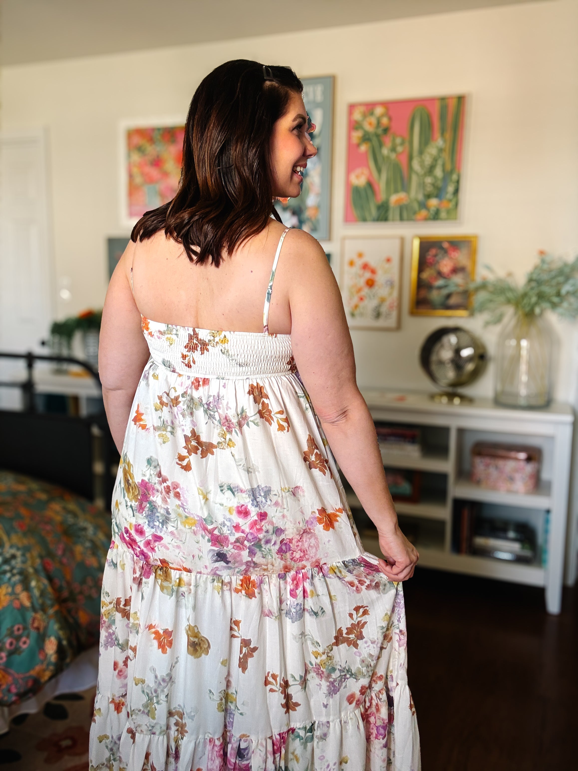 Flowy, tiered maxi silhouette that is ultra flattering and forgiving