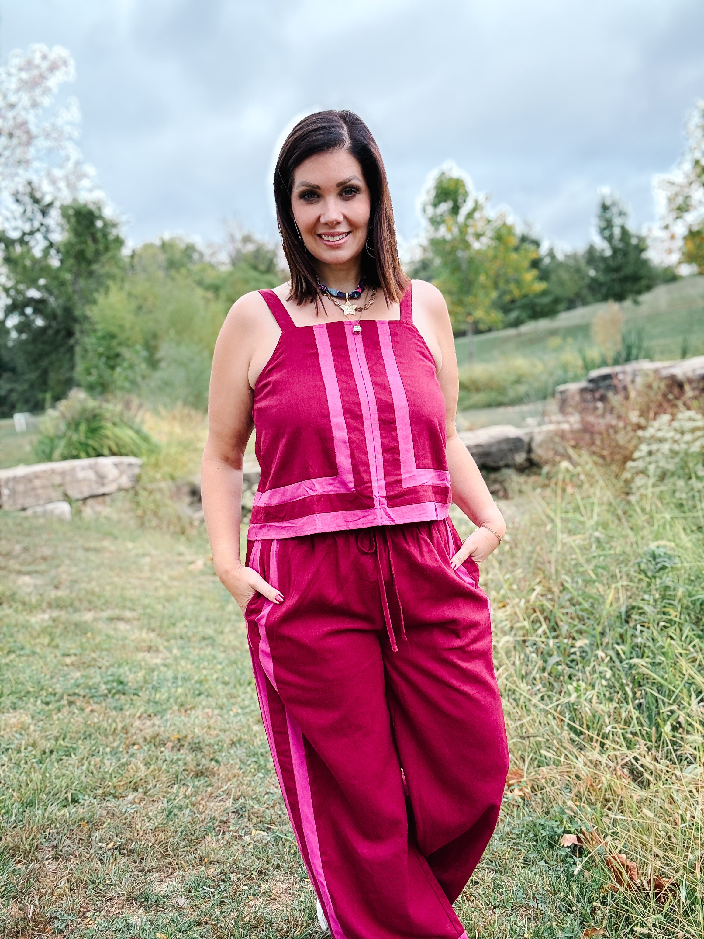 Have you been searching for a bold, beautifully made burgundy and pink two-piece set that nails the perfect mix of elevated and effortless? The Marisela Set is the definition of modern cool, giving you that pulled-together look without sacrificing comfort. Whether you’re brunching, jet-setting, or just want to look like that girl on a Tuesday, this set is the shortcut.