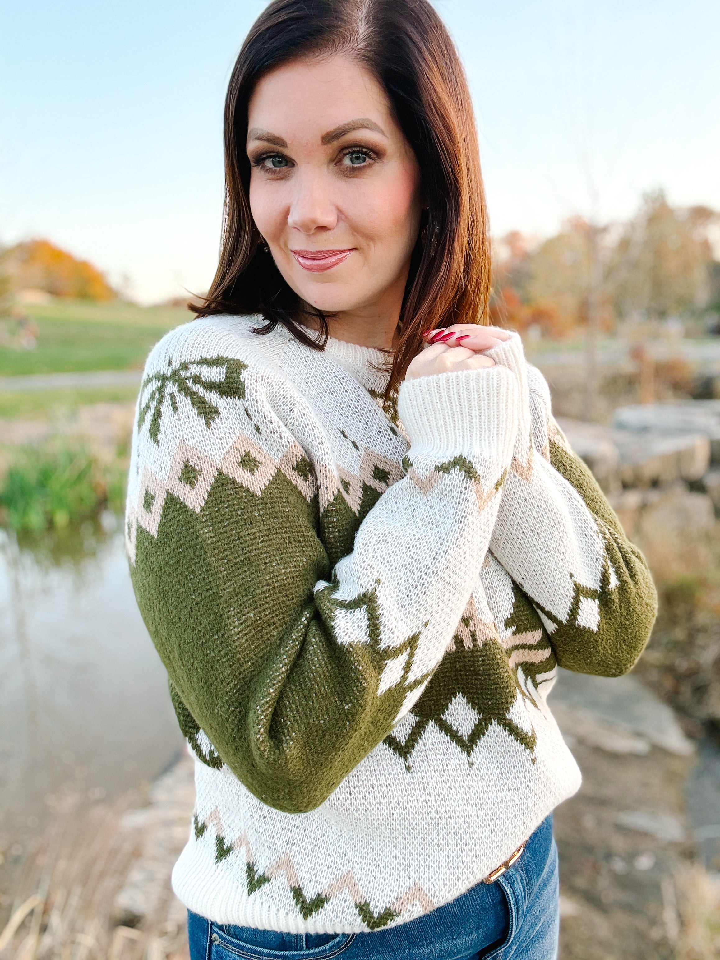 This playful knit is giving serious vintage-ski-lodge-meets-modern-mama energy, and it's exactly what you'll want to be wearing for tree trimming, cookie baking, and casual festive hangs.