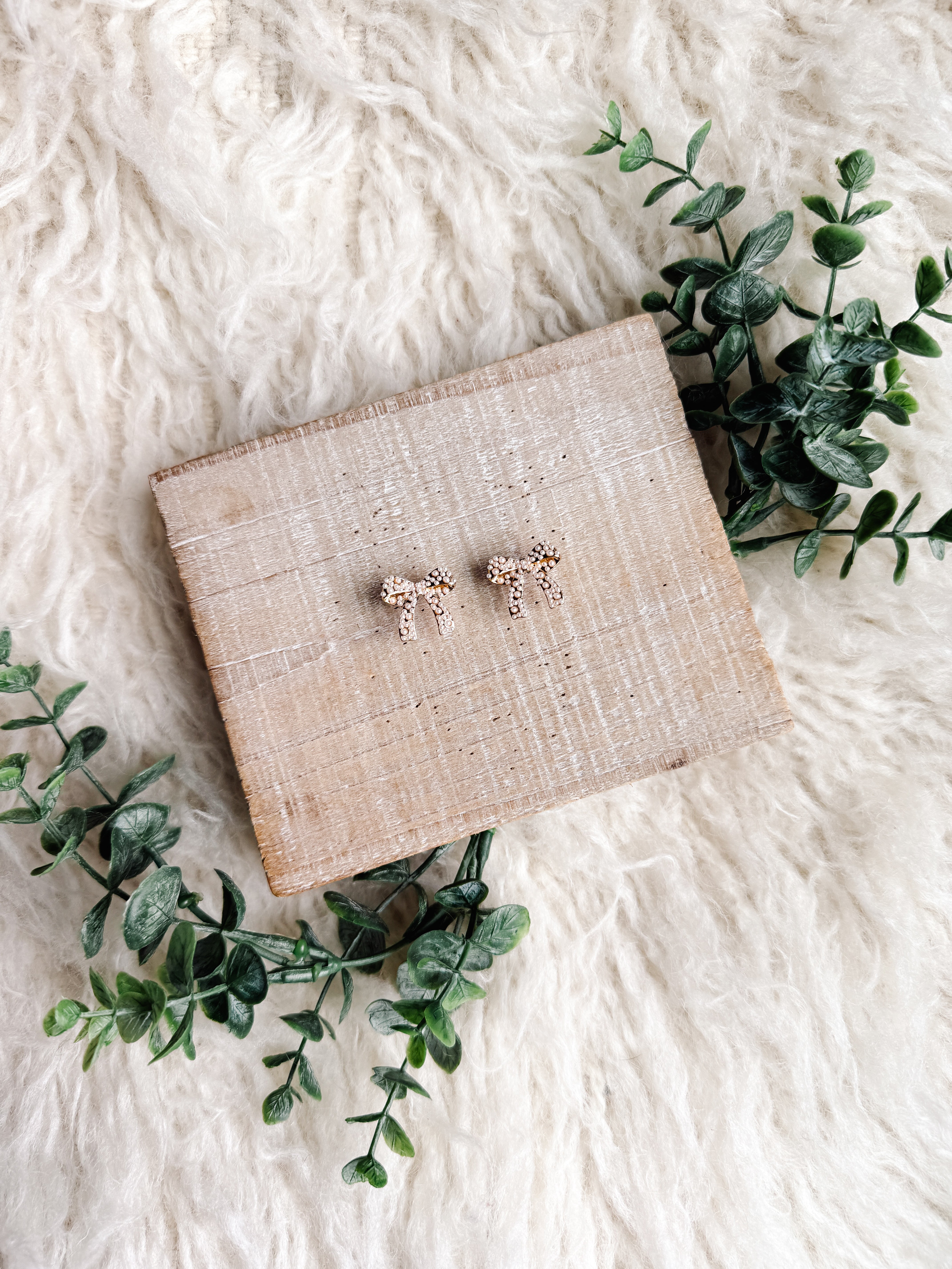 These petite studs are equal parts sweet and sophisticated, with a tiny bow silhouette made from luminous faux pearls. Whether you're styling them with an elegant holiday dress, a velvet blazer, or just a cozy knit and ballet flats, these are the earrings that whisper polished and pretty without saying a word.