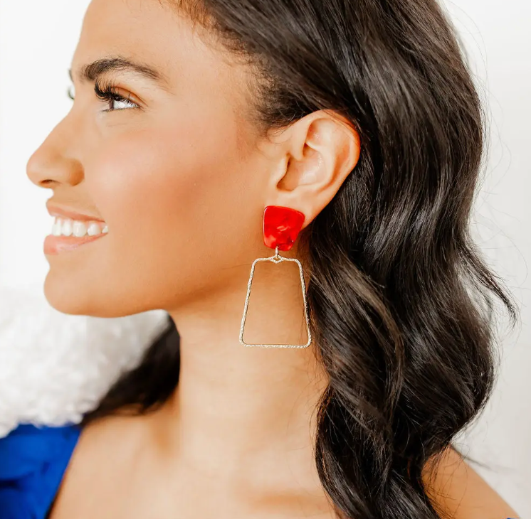 Meet the Kaelyn—Linny Co’s jaw-dropping statement earring in a pearlized red finish that delivers main character energy from every angle. With a lightweight design and hammered gold trapezoid drop, this pair brings the wow factor whether you're headed to a holiday party or just need a reason to wear red on a Tuesday.