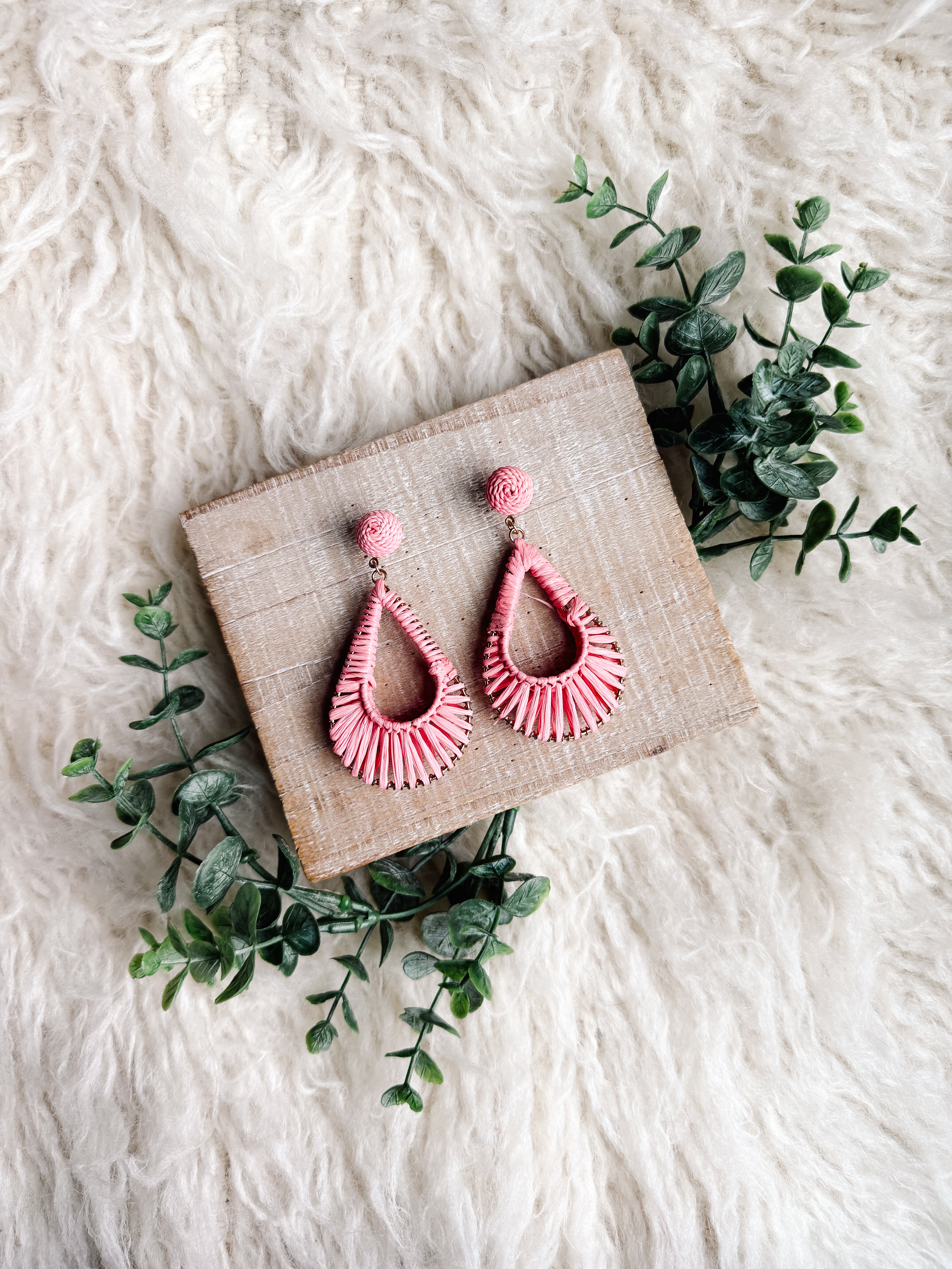 These beautifully wrapped blush raffia earrings feel like a handmade treasure you stumbled upon at an outdoor market—only polished and boutique-ready for your next girls’ night, winery day, or fall family photos. Pair them with a cozy cream sweater or a ruffled maxi dress in rich autumn hues for the ultimate modern boho look.